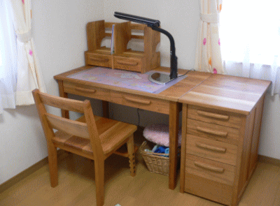 | 机の下に脇机を入れるタイプのセットです。 |